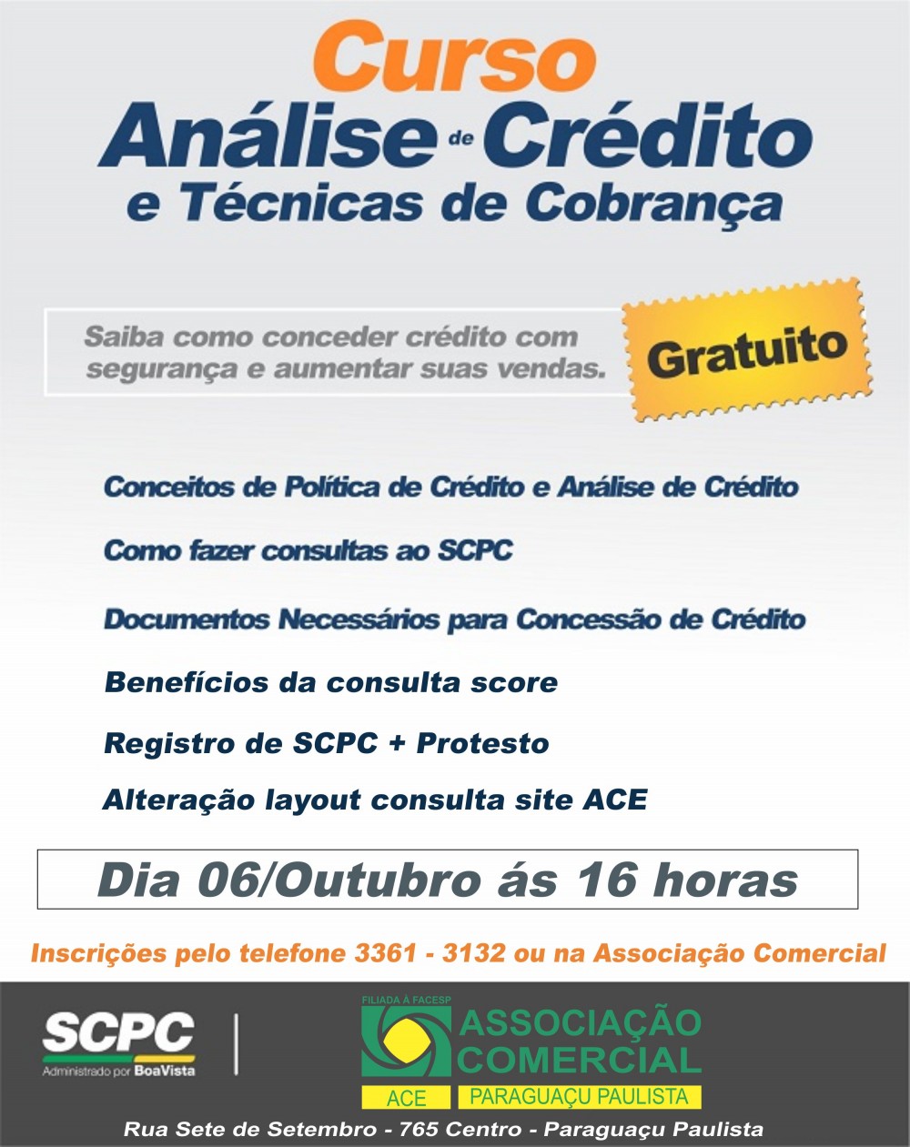 Devido aos altos índices de inadimplência do município, a ACE realizará um curso de crédito e cobrança.