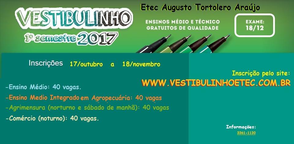 A parceria entre Associação Comercial e a ETEC Augusto Tortolero Araujo, que viabilizou o Curso Técnico em Comércio em Paraguaçu Paulista TOTALMENTE GRATUITO INCLUINDO TRANSPORTE, está abrindo mais uma turma com 40 vagas!